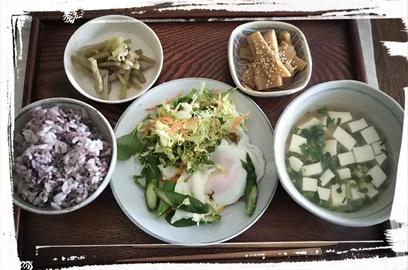 昼)目玉焼き/サラダ/フキの煮物/メンマ/味噌汁 ※久々に食べたくなった 目玉焼き。 私は、お醤油をかけて頂きます。 |