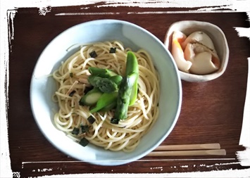 昼)たらこパスタ ※ちょっとバタバタして、一皿ランチ 頂き物のアスパラガスは最後の1本。 シャキシャキでおいしい!! ボリュームたっぷりで、満足ランチでした(^^♪ |