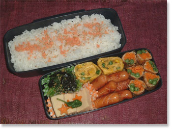 | 息子のお弁当 13 (高校生時代) 母の努力も虚しく、かなりの「マンネリ化」を止めることはできず、、、 「まきまき作戦(肉で野菜等を何でも、くるくると巻く作戦(^。^)y-.。o○)」は続く・・・(^^ゞ |