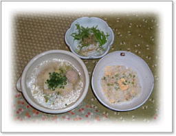 豚肉の野菜巻上げ(人参・大葉・チーズ入り) サトイモとこんにゃくの煮物 大根菜と油揚げの炒め物 大根・小松菜の味噌汁 白ゴマご飯 |
