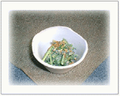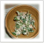 さっと茹でた菜の花を ごま、ピーナッツ(粉状)と マヨネーズで和えたもの |