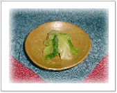 茹でた白菜と人参に たっぷりの焼き海苔を混ぜ、 醤油と鰹節で・・・ |