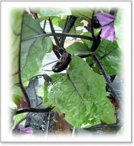![]() ナスも順調に、綺麗な花を咲かせています。 |