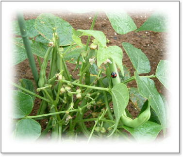 ![]() インゲンに天道虫がいるの、わかりますか? (写真右中央あたり) ![]() ![]() |