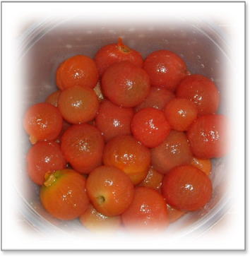 我が家のにミニトマトは相変わらず味がしない。 皮むきをしてトマトスープに・・・ パセリも畑のもの |