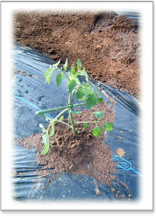 トマト・なす・レタスの畝には、 虫除け、温度確保の為、マルチビニールをかけました |