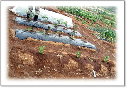 | 元気がないきゅうりの苗 | カリフラワーは何とか元気 | |