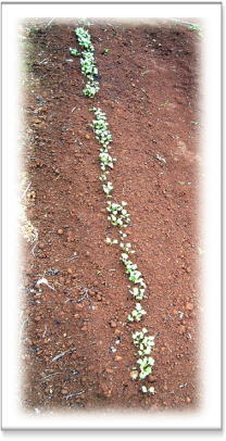 | 前回蒔いた大根と人参の芽が、出ました! 小さな姿ですが、元気に顔を出しました!! (*^^)v なんて、嬉しいのでしょう! なんて、どきどきするのでしょう! 風よけのビニールもしっかりとして、 野菜たちを守ってくれています。 ありがとう! |