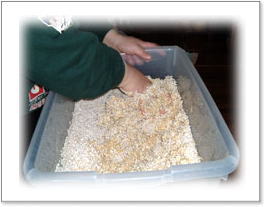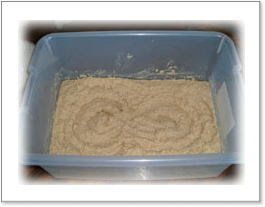 茹でてつぶした大豆に水を加えよく混ぜます。 *入れ物は「味噌つくり専用タッパ」 ですが、これ、何を隠そう、 衣装ケースです。 我が家には味噌専用ケースが 存在します! |