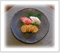 湯葉の巻物 魚と山芋のすり身を湯葉で巻いて・・・ はすの梅酢和え 梅肉をたっぷりと・・・ くりきんとん さつまいもは甘みを控えて・・・ |