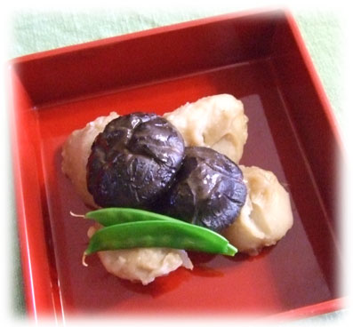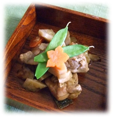 | *里芋煮 ほっこりした里芋は甘辛くて干しシイタケとも 美しい相性のよさ。 |