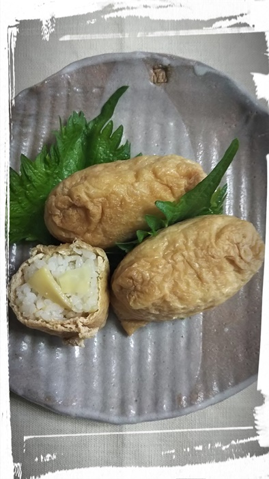 春になると、職場の竹やぶで、筍を掘ります。 酢飯の筍ご飯にして、お稲荷さんに・・・ |