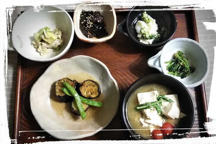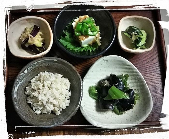 おひとりさま御膳(1) おひとりさまご飯が週に3回あります。 ストックの野菜をあれもこれも欲張って 一人でもしっかりいただきます(笑) 茄子とピーマンの味噌煮は、時々食べたくなつ懐かしい味 茄子は、漬物でも美味しいです。 |