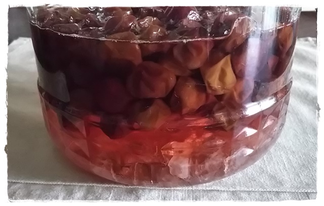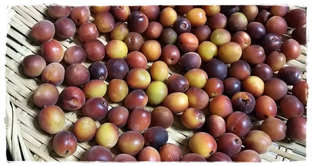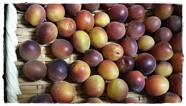宅配生協で出会った 「パープルクイーン」 赤い小梅。 香りもよくて、シロップを作って、孫たちに。 |
