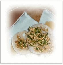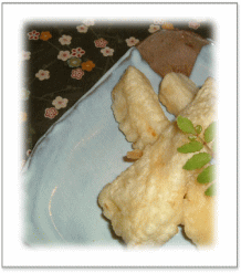![]() 茹でた筍に大葉をまるまる1枚入れ、 豚肉(しゃぶしゃぶ用)を巻き、フライに シャキシャキの水菜と大根を添えて・・・ ![]() 山芋に桜海老と黒ゴマを合えた衣を付けて 天ぷらに・・・ ![]() 人参、コーン缶、インゲンなど、 冷蔵庫の残りを利用した、小さな掻き揚げ 出し醤油と地粉だけで作ります お弁当の人気者 ![]() 素揚げにしたはすに、 白ゴマと万能ネギとごま油、醤油のたれをかけて・・・ |