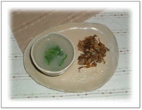 ![]() アツアツの揚げたてがんもと味噌汁・・・ 美味しい ![]() 摩り下ろしたレンコンに貝柱缶詰めとシメジ、 しょうがを和え、レンジで火を通し、 白だしをかける 蒸しかぼちゃ 豆腐と野菜の湯葉包み ほうれん草添え |