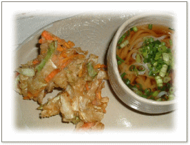 ![]() コンニャクステーキはしょうゆ味、 おかかをたっぷりと・・・ ![]() 人参、キャベツの掻き揚げ 万能ねぎたっぷりの素うどん |