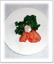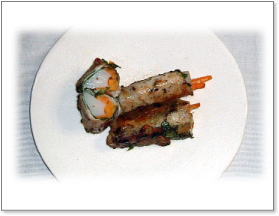 「プチヴェールとトマトのサラダ」 ![]() 「豚肉の野菜巻き焼き」 (はす・大葉・人参) ![]() |