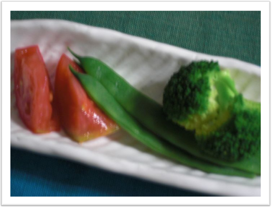 ブロッコリーといんげんは茹でただけ 歯ごたえのある美味しさは幸せの触感。 茹でた時の緑色は元気の色。 ![]() |