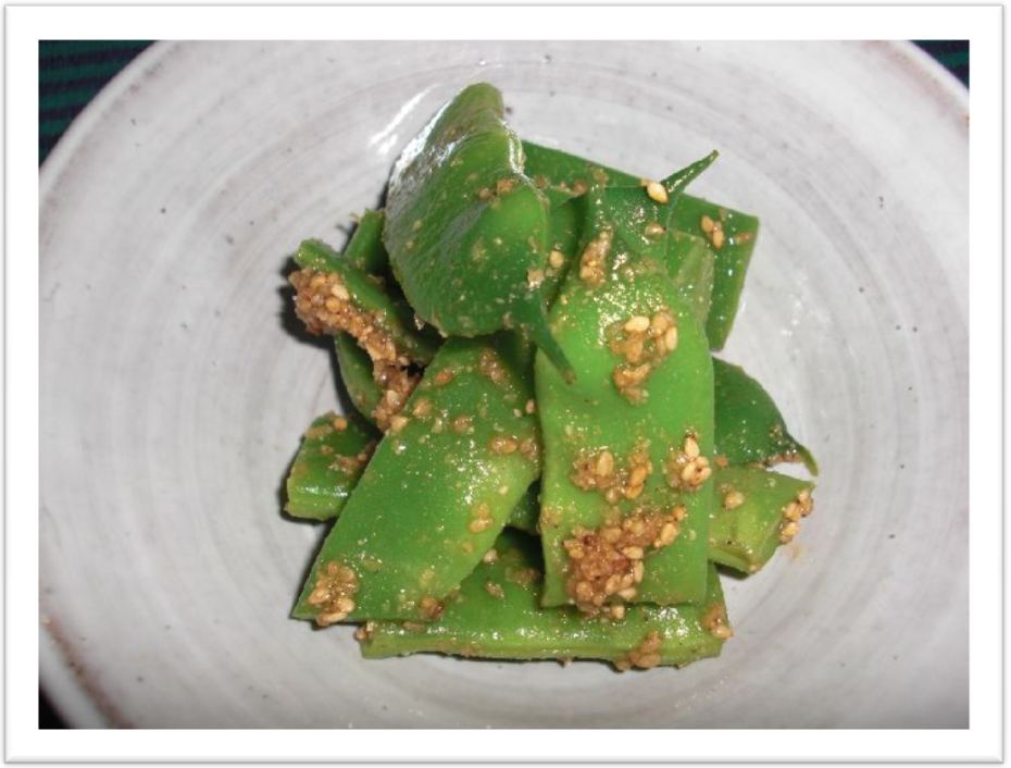 モロッコいんげんは 胡麻和えにして・・・ |