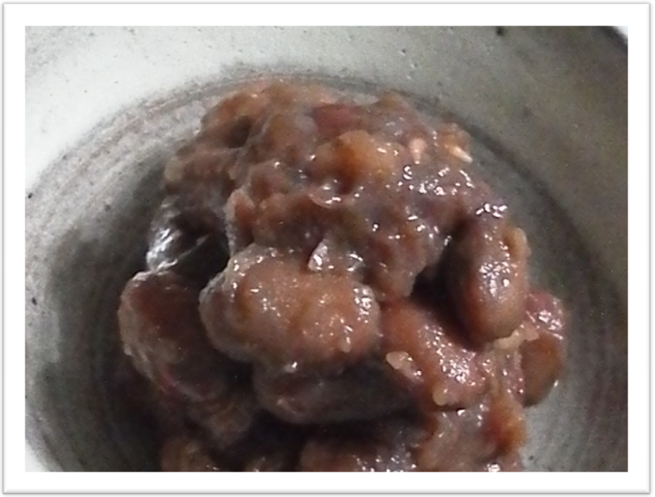 | うずら豆は、に崩れるまで煮て・・・ この甘さがたまらない・・・ |